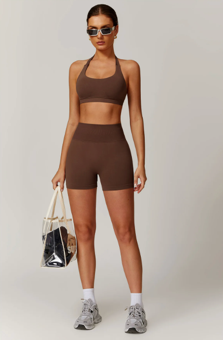 2-Piece Set – Includes a halter tank top and matching compression shorts.
